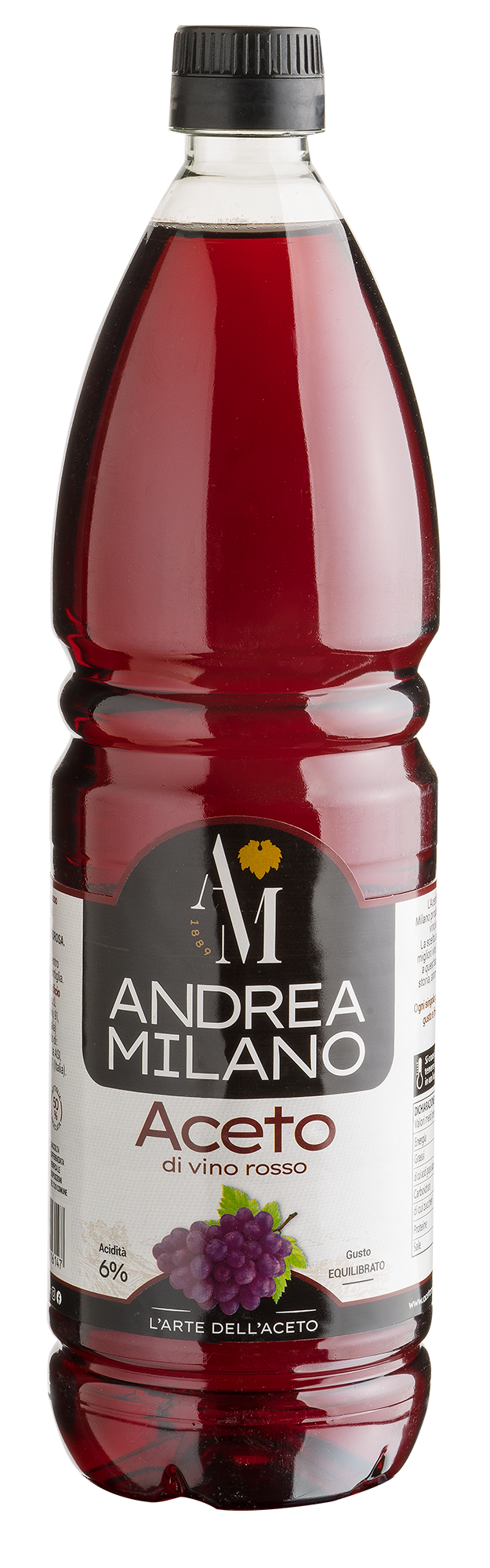 Rødvinseddike 6%, 1 l Info Varenummer 100212 Mærke Andrea Milano Emballage Flaske Pakning 12 x 1 l Kartoner pr palle 50